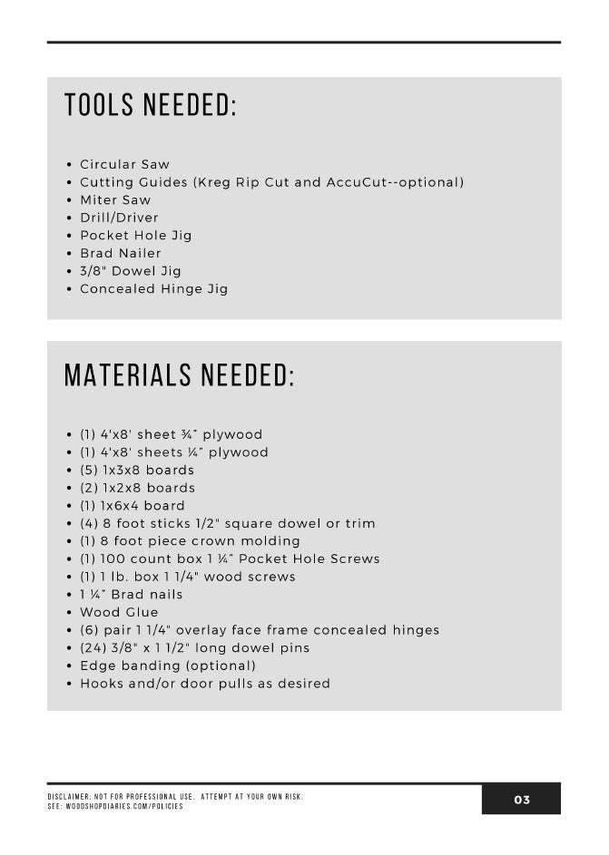 Tools & materials lists and overall dimensions can be found in the plan preview images and in the blog post linked above.