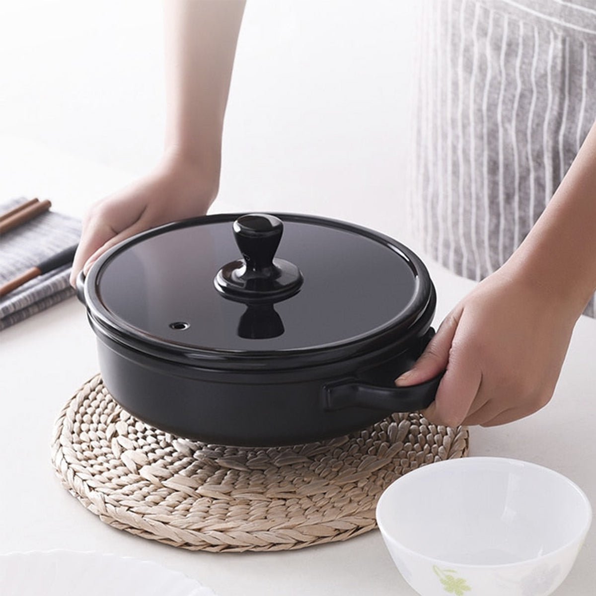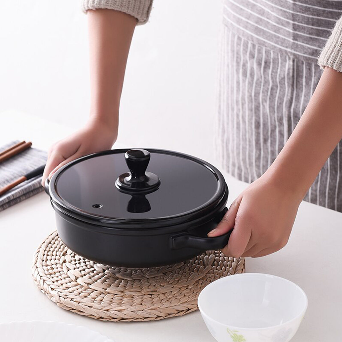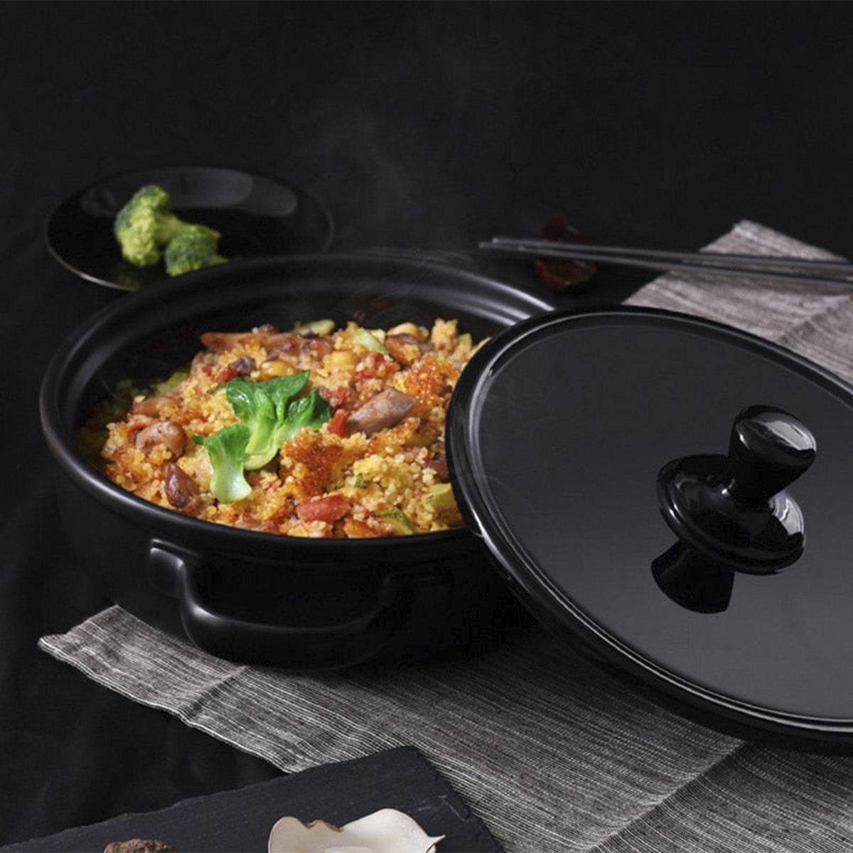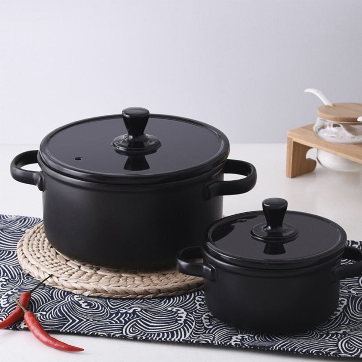 Black Enameled Ceramic Soup Pots