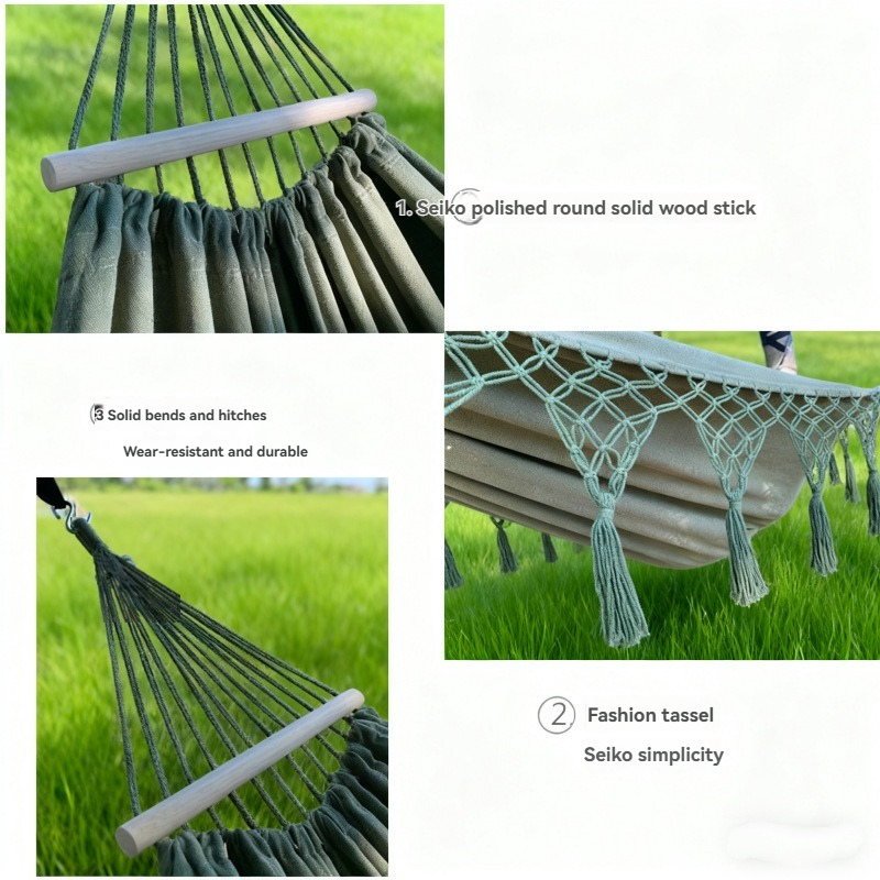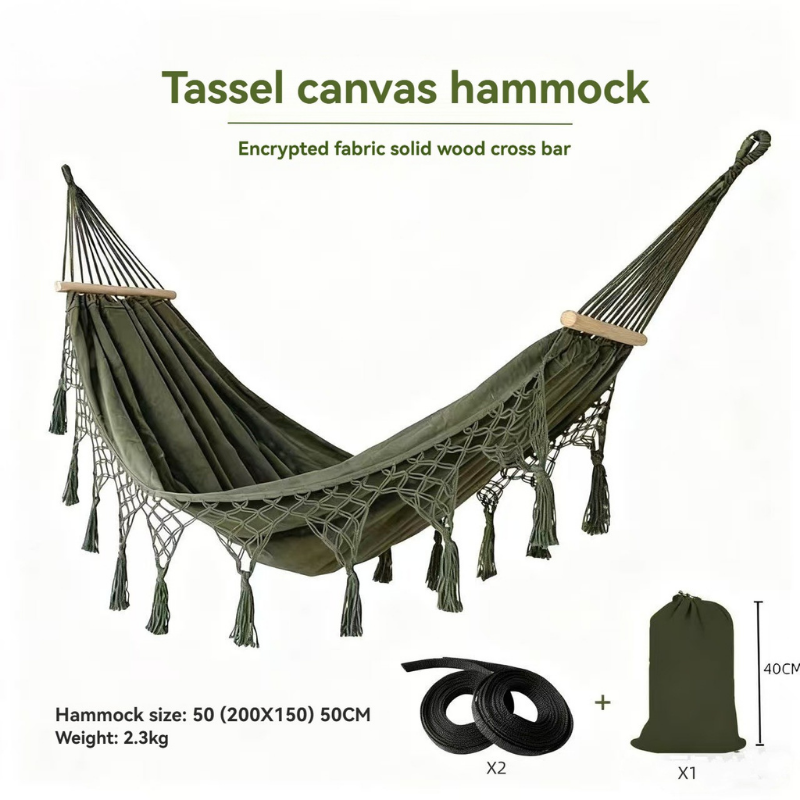 ��Designed for comfort, balance, and everyday relaxation, this extra-wide canvas fringe hammock offers a stable, anti-roll design ideal for both indoor and outdoor use. Handcrafted with heavyweight 320 g/m虏 cotton canvas, it provides a soft yet supportive surface that gently cradles your body while you rest, read, or unwind.