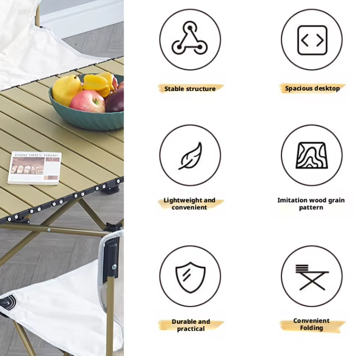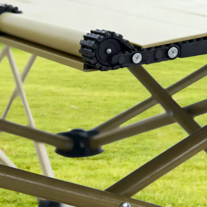 Rolled-edge tabletop: The aluminum alloy tabletop can support up to 100 kg/220 lbs, enough to hold most of your belongings, and you can even sit comfortably on it.