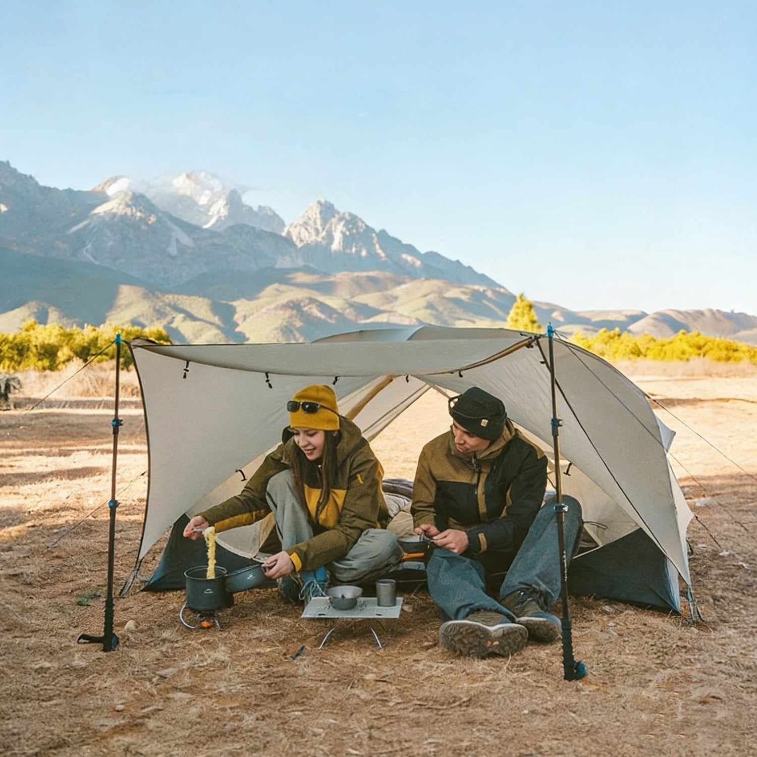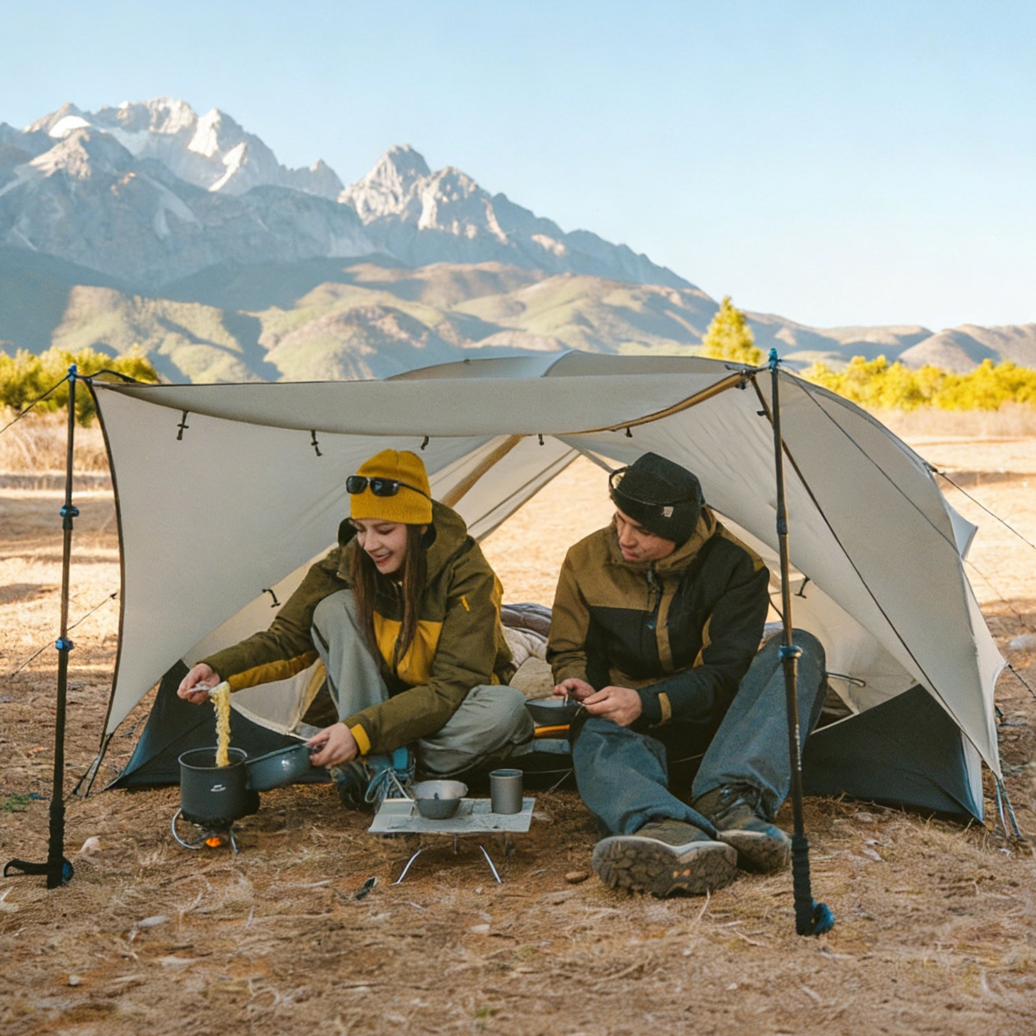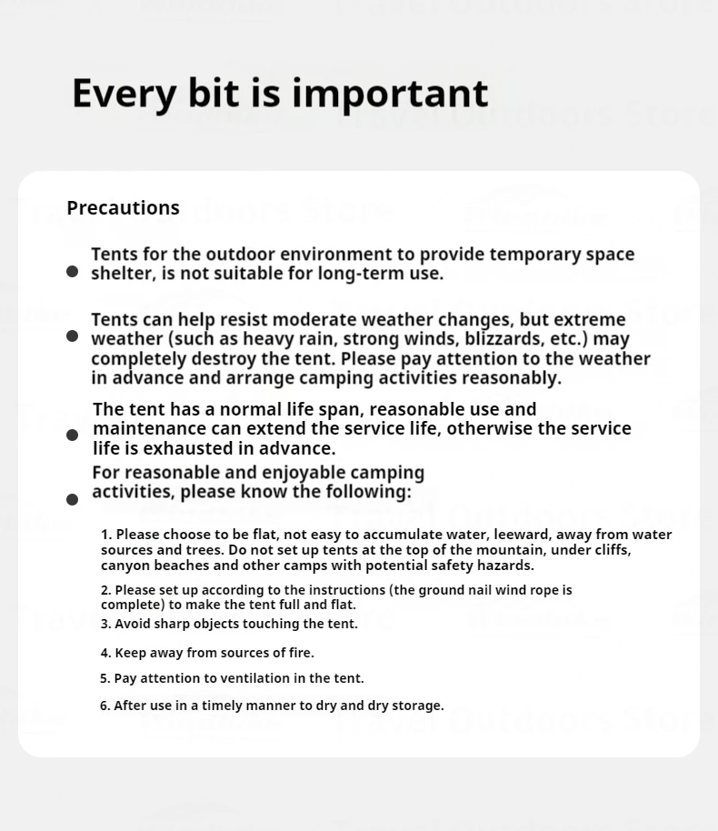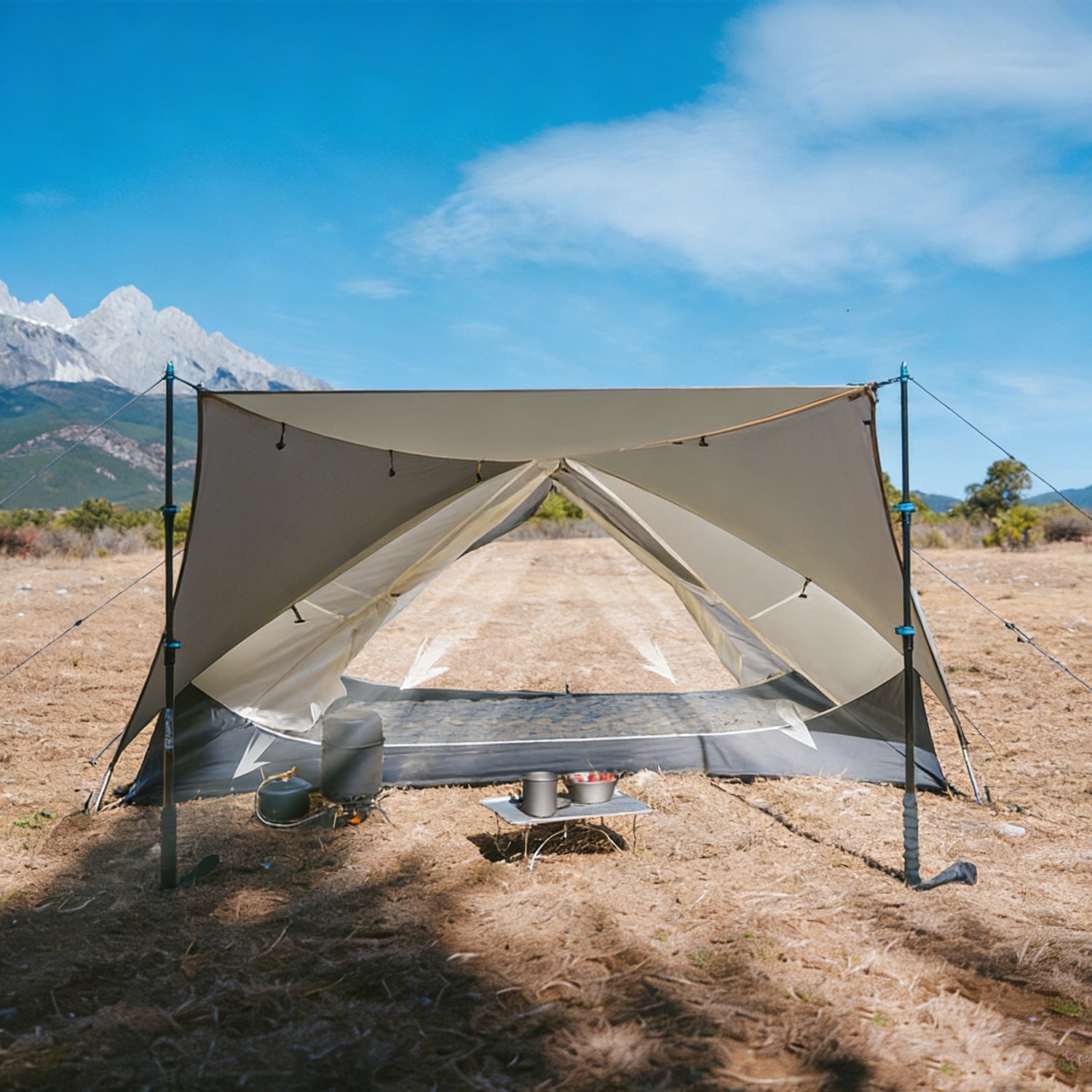 Sturdy & User-Friendly Setup: Equipped with a secure pole fixing system using guy ropes for wind resistance, Velcro connections between poles and flysheet for stability, and a complete accessory kit (including ground cloth, nails, and wind ropes), this tent ensures quick, stable setup and safe, enjoyable camping experiences.